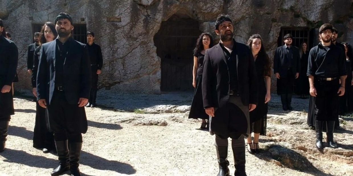 Experience explosive Cretan drumbeats, the mesmerizing lyra, feel the ground shake as the dancers leap and stomp and land with earth-shattering power in their beautiful improvised renditions of the Pentozali in our latest dramatic production of famous Cretan writer and philosopher, Nikos Kazantzakis' most prolific work, Salvadores Dei. Complemented by ethereal folk singing, the actor navigates through the difficulty of Kazantzakis’ heightened text with ease and grace, and an incredible ability to harness the raw energy around her with the flip of a switch, anchoring the whole theater with the somber, solemn, spirit of the text, and just as easily unleashing it. All three mediums come together, converging and running through the audience to connect into one strong line of energy; through Kazantzakis’ words and the legendary ancient Cretan traditions he sprang from, you will feel the show, with each powerful performance more unique and special than the last.