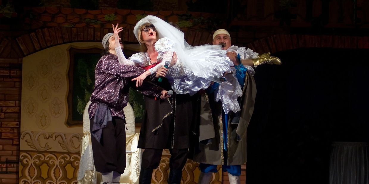 Immerse yourself in the plotting and scheming in a beautiful outdoor amphitheater where the action quickly unfolds. Pick a side, as the women come up with a brilliant idea to achieve peace throughout the land by boycotting what men want most from their women! Or perhaps side with the Men of Greece, as they retaliate in agony and try to outsmart the women! As you sit in the amphitheater, don't be surprised if you find yourself swept up with either one of the Choruses of Old Men or Old Women, as they stagger down, descending through the audience for a verbal showdown of wits and insults, and a good old fashion septuagenarian throwdown!